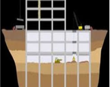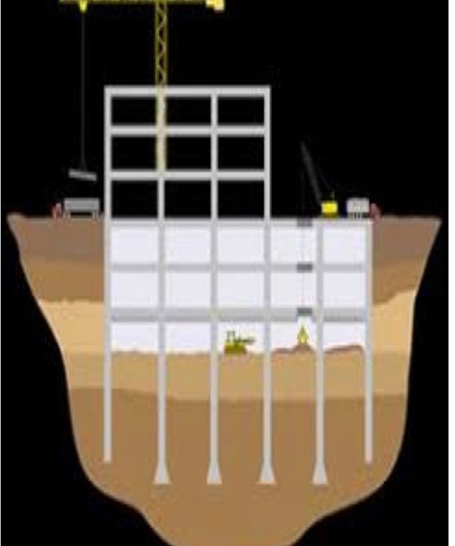 "UP-DOWN" SYSTEM FOR ASSEMBLY OF THE STRUCTURE AND EXCAVATION SIMULTANEOUSLY AND SFS® SOUND BARRIERS