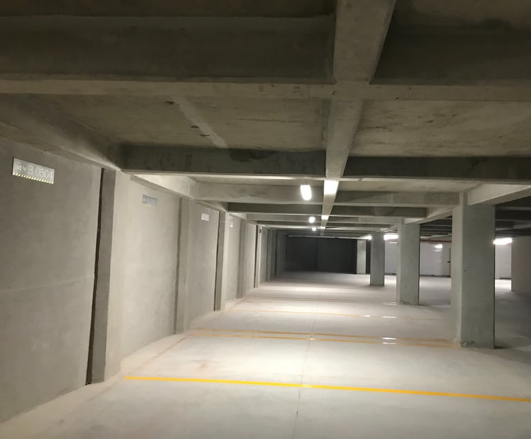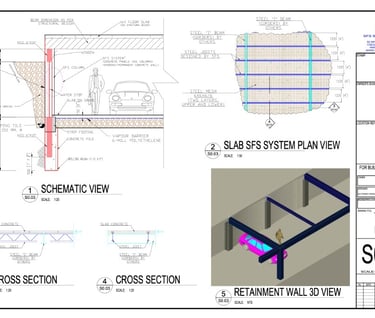 1.- (A-B) SFS® system of retaining walls in underground parking lots and protection of adjoining areas. No need for anchors or temporary walls or disposable bracing system.