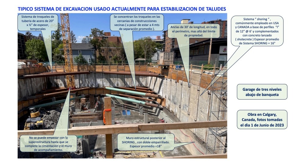 ESTO ES CONTRA LO QUE COMPETIMOS: PROCESO SUMAMENTE COSTOSO, EMPLEANDO ANCLAS, MURO PROVISIONAL DE SOPORTE DE TALUDES ( SHORING, MURO BERLIN, MURO MILAN, MURO DE CONCRETO LANZADO, TABLESTACAS, ETC. ) , QUE SOLO ENCARECEN MAS LA CONSTRUCCION Y RETRASAN EL PROCESO CONSTRUCTIVO. SFS® ES LA ALTERNATIVA MAS MODERNA, ECONOMICA Y SEGURA.